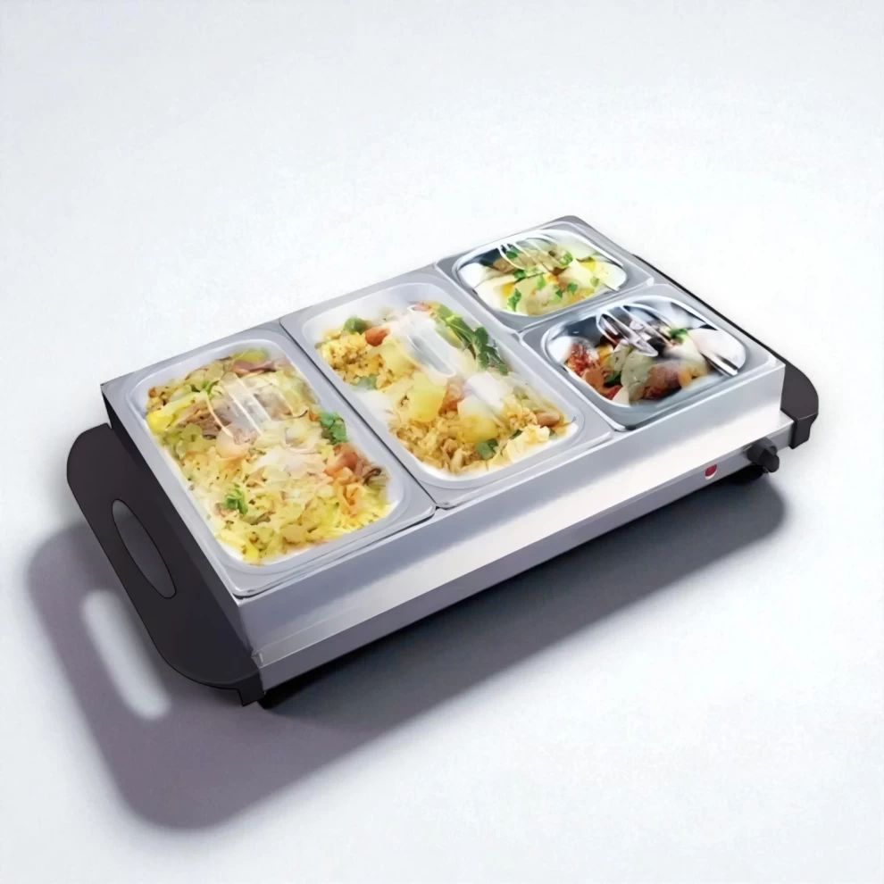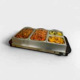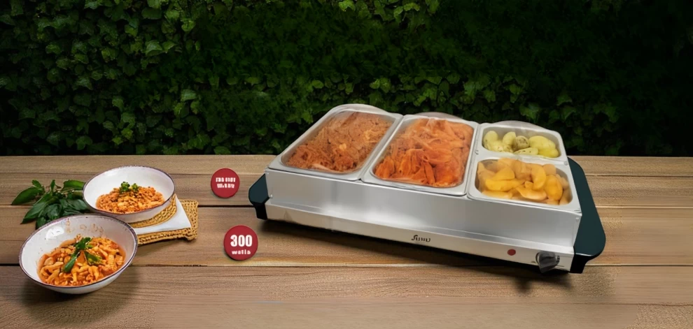 ودّع الأكل البارد مع جهاز البوفيه الكهربائي المكون من 4 صواني – مثالي للحفلات، العزائم، واجتماعات العائلة. يحافظ هذا الجهاز الذكي على حرارة الطعام المطبوخ ويجعله جاهزاً للتقديم لفترات طويلة. مزوّد بصواني من الستانلس ستيل مع أغطية شفافة، وسطح تدفئة معدني، ودرجة حرارة قابلة للتحكم. سهل الاستخدام، آمن، وعملي في أي مناسبة.
