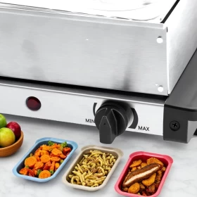 • 🍲 4 صواني قابلة للإزالة – لتقديم وتسخين أطباق متعددة في وقت واحد