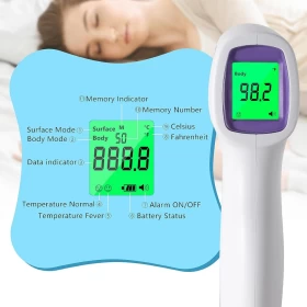 • وضع 2 في 1: تم تصميم ميزان الحرارة الرقمي بالأشعة تحت الحمراء خصيصًا للأطفال والكبار وكبار السن. بالإضافة إلى مراقبة درجة حرارة الجسم، فهو قادر أيضًا على القيام بذلك