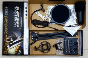 حزمة ميكروفون ، مجموعة ميكروفون مع بطاقة صوت حية ، ميكروفون قابل للتعديل لتسجيل الاستوديو والبث
