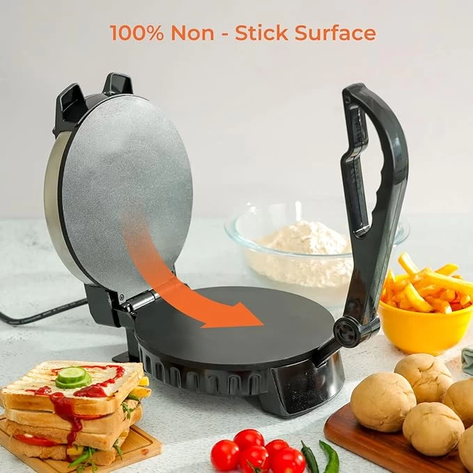 🫓⚡ آلة صنع الشباتي والروتي الكهربائية – سطح غير لاصق