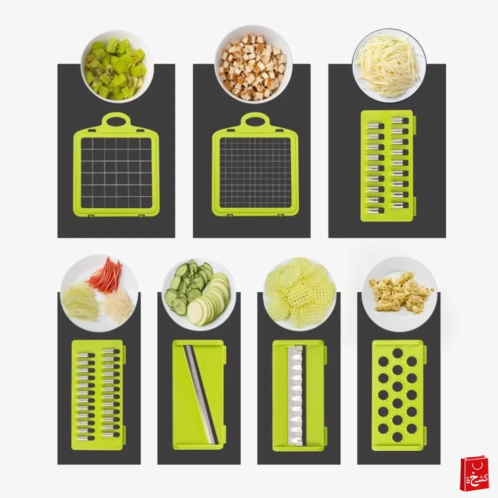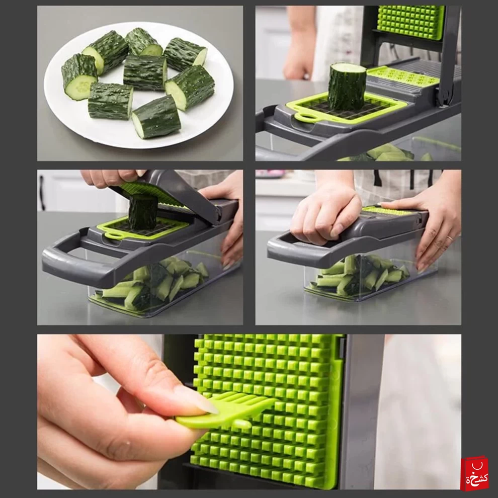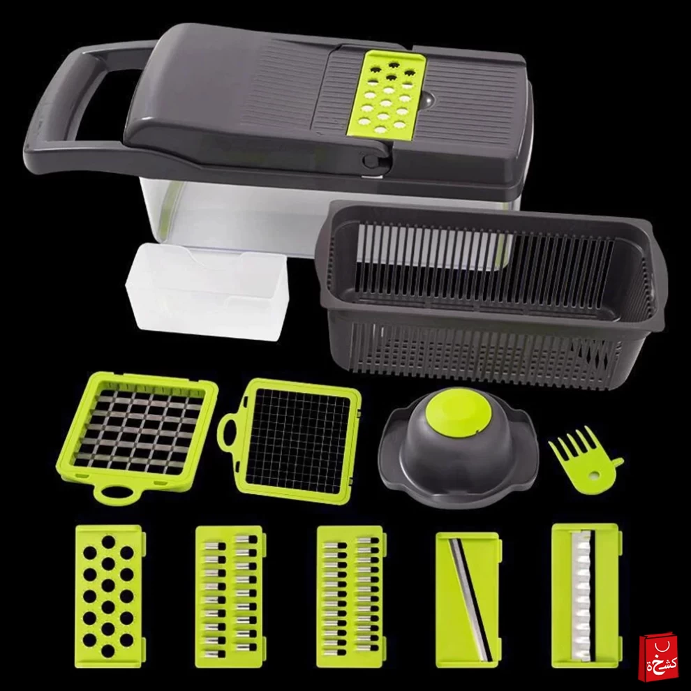 🥕 قطّاعة خضروات متعددة الوظائف 14 في 1 مع وعاء – 8 شفرات