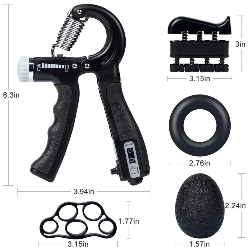 تحتوي مجموعة تقوية قبضة اليد الخاصة بنا على مدرب مقاومة قابل للتعديل (0-132 رطلاً / 0-60 كجم) وشريط مقاومة نقالة الإصبع. يمكن للمستخدم استخدامه يوميًا ويمكنه علاج إصابات اليد والتهاب المفاصل الروماتويدي والتهاب المفاصل والنفق الرسغي والتهاب الأوتار والكسور وكسور المعصم وجراحة الأوتار