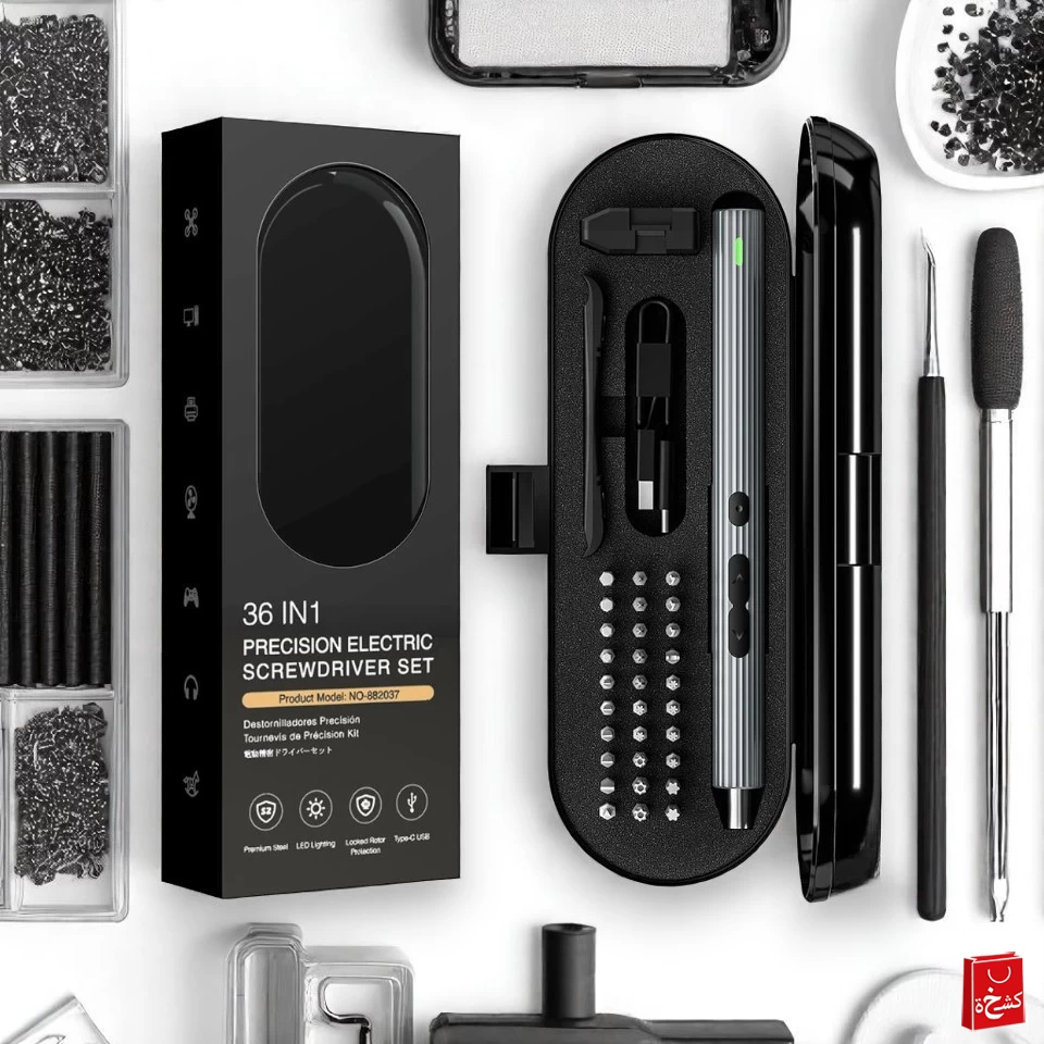• 🔧 الرؤوس المرفقة: 36 رأس مفك متنوعة