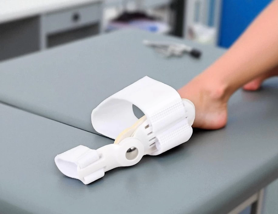 1️⃣ ضع الجبيرة على القدم فوق إصبع الإبهام