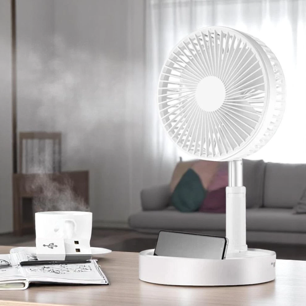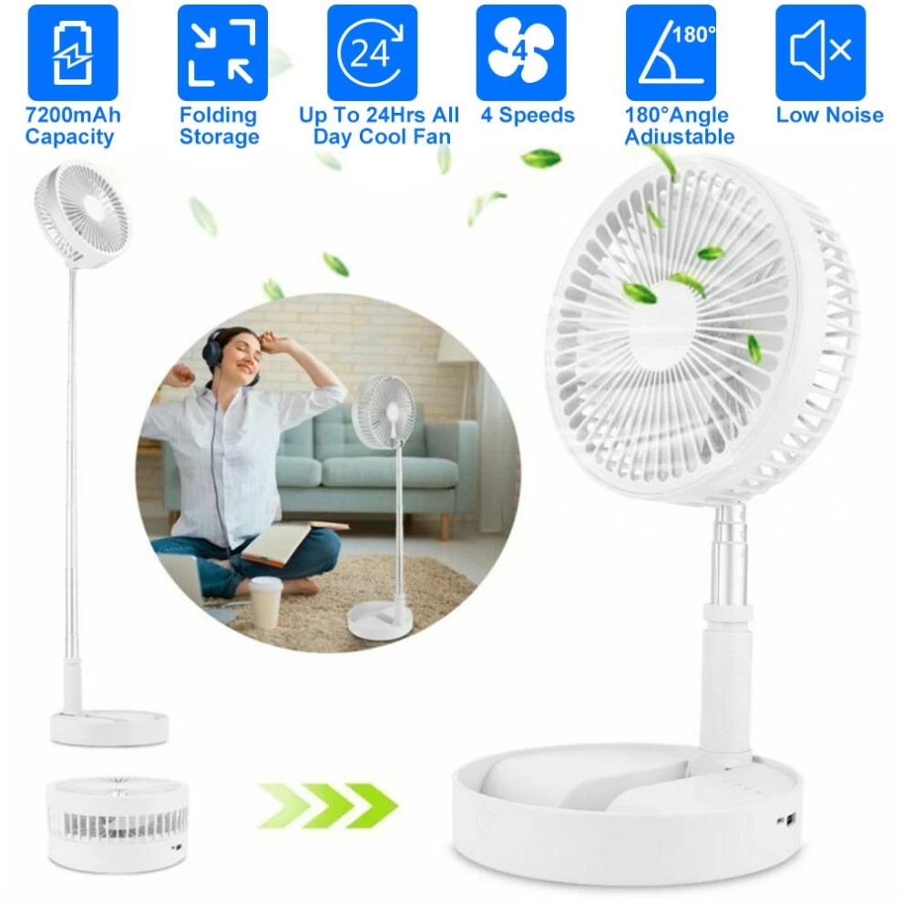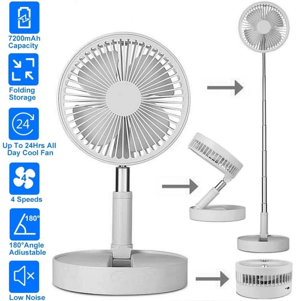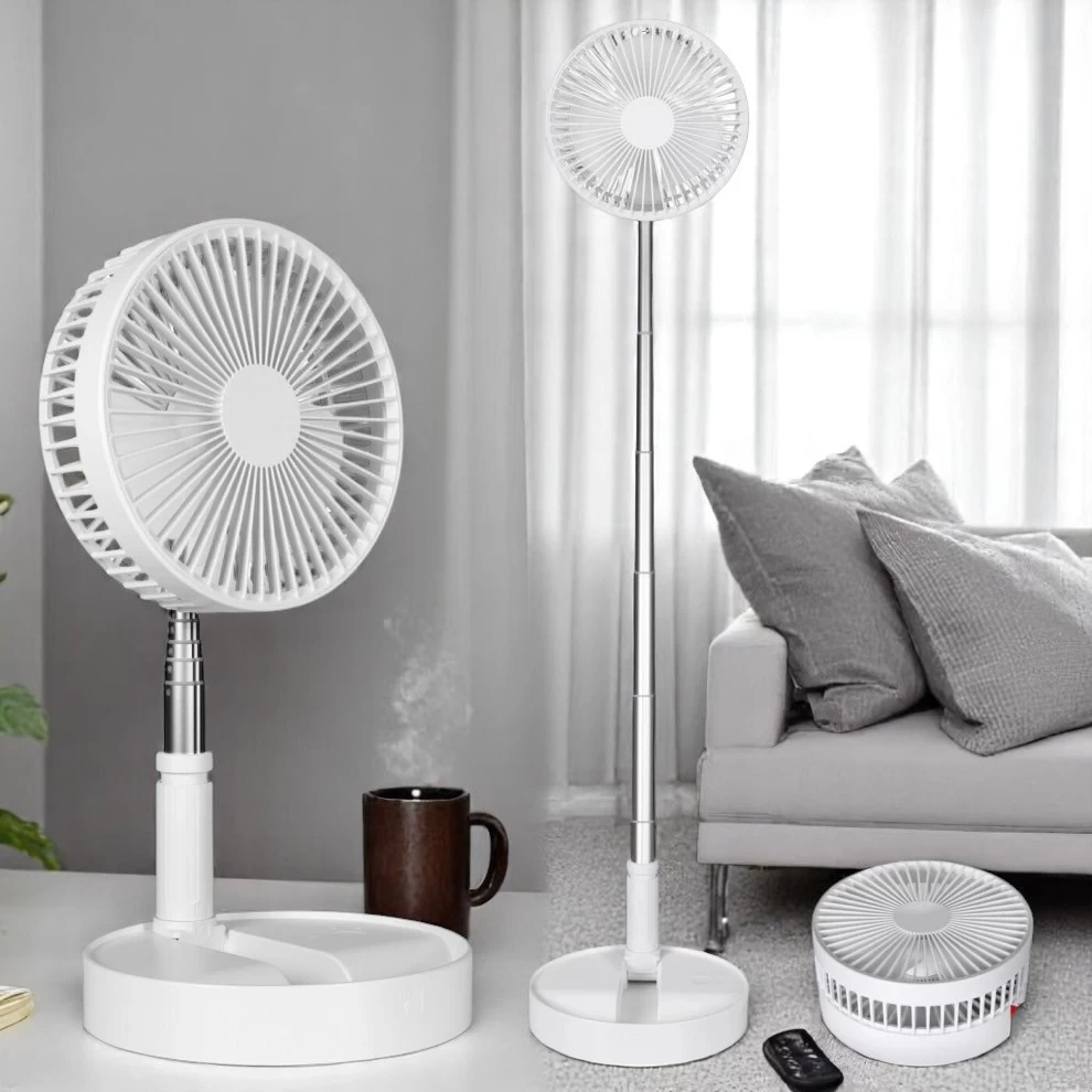 استمتع بالانتعاش في أي مكان! هذه المروحة القابلة للطي متعددة الاستخدامات، تعمل كمروحة مكتب أو مروحة أرضية بتصميم هادئ، بطارية طويلة العمر، ومرونة في الحمل والتنقل داخل وخارج المنزل.