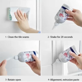 حل سهل وسريع لتغطية الشقوق والفجوات في الحمام أو المطبخ أو أي مكان يحتوي على بلاط، بدون فوضى أو أدوات تصليح باهظة. يحافظ على نظافة البلاط ومنع نمو العفن والبكتيريا.