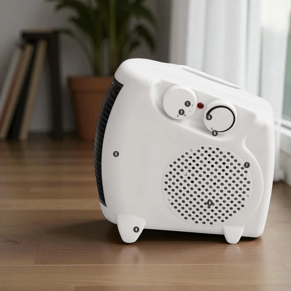 استمتع بالدفء في أيام البرد مع دفاية الهواء الكهربائية بقوة 2000 واط. تعطي تدفئة فورية مع تحكم بدرجة الحرارة وحماية أمان مدمجة. مثالية للغرف، الصالات، المكاتب، وغرف النوم.