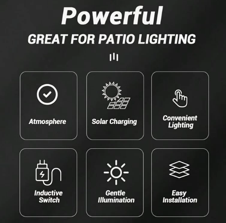 • فقط ضعه حيث يحتاج الضوء في الليل. لا حاجة لتغيير الكابلات أو البطاريات، استخدم الطاقة الشمسية المجانية.
