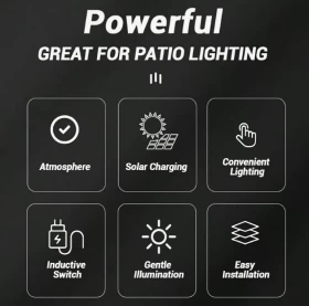 • تعمل بالطاقة الشمسية، لا حاجة إلى كهرباء أو بطاريات، 3 أوضاع إضاءة