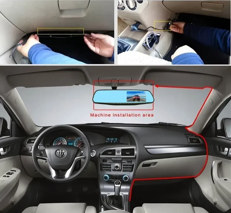 1️⃣ ثبّت الكاميرا على مرآة السيارة الأمامية