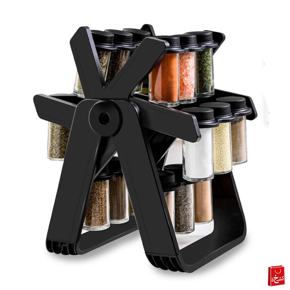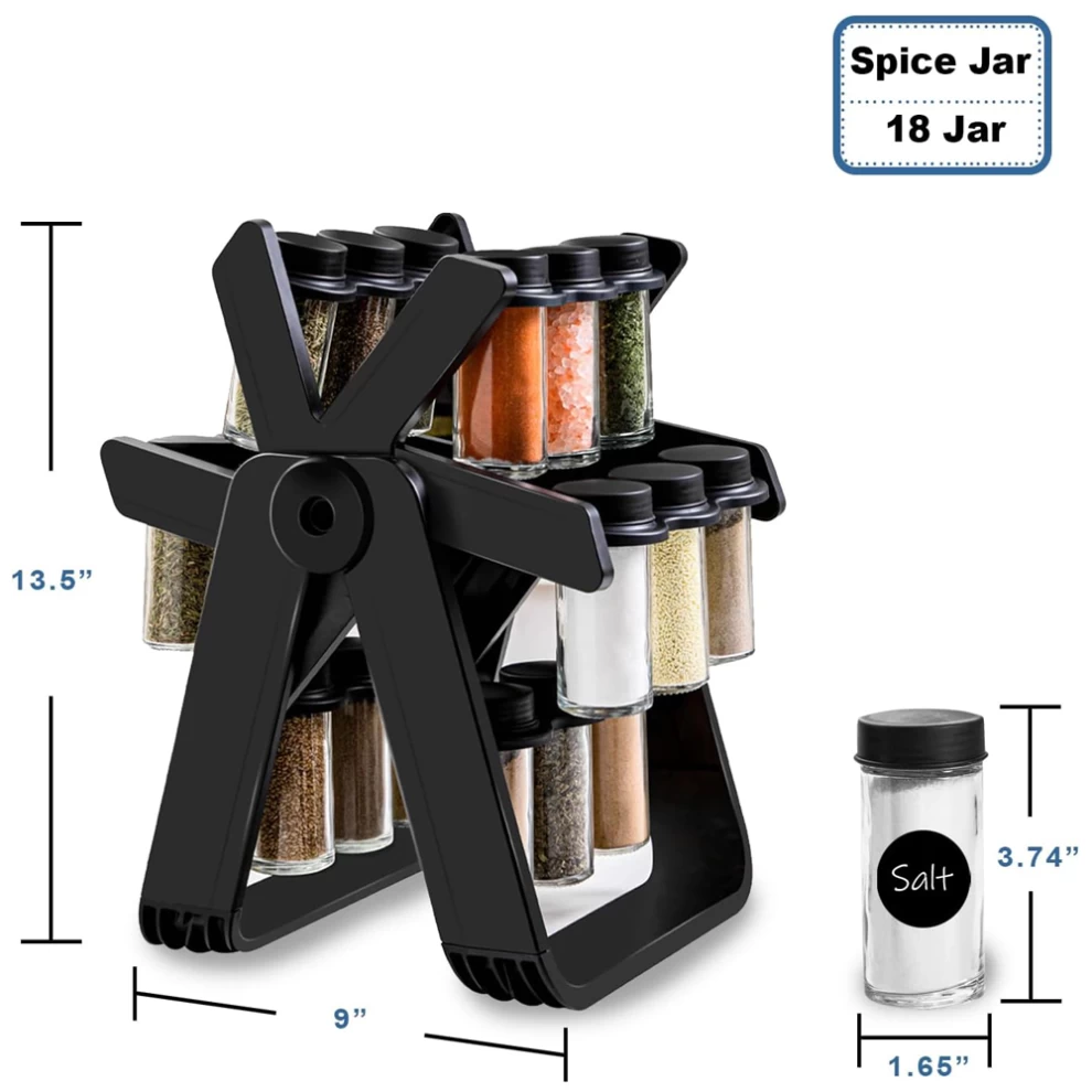 طقم توابل 18 قطعة بحامل تخزين دوار  للتوابل المختلفة