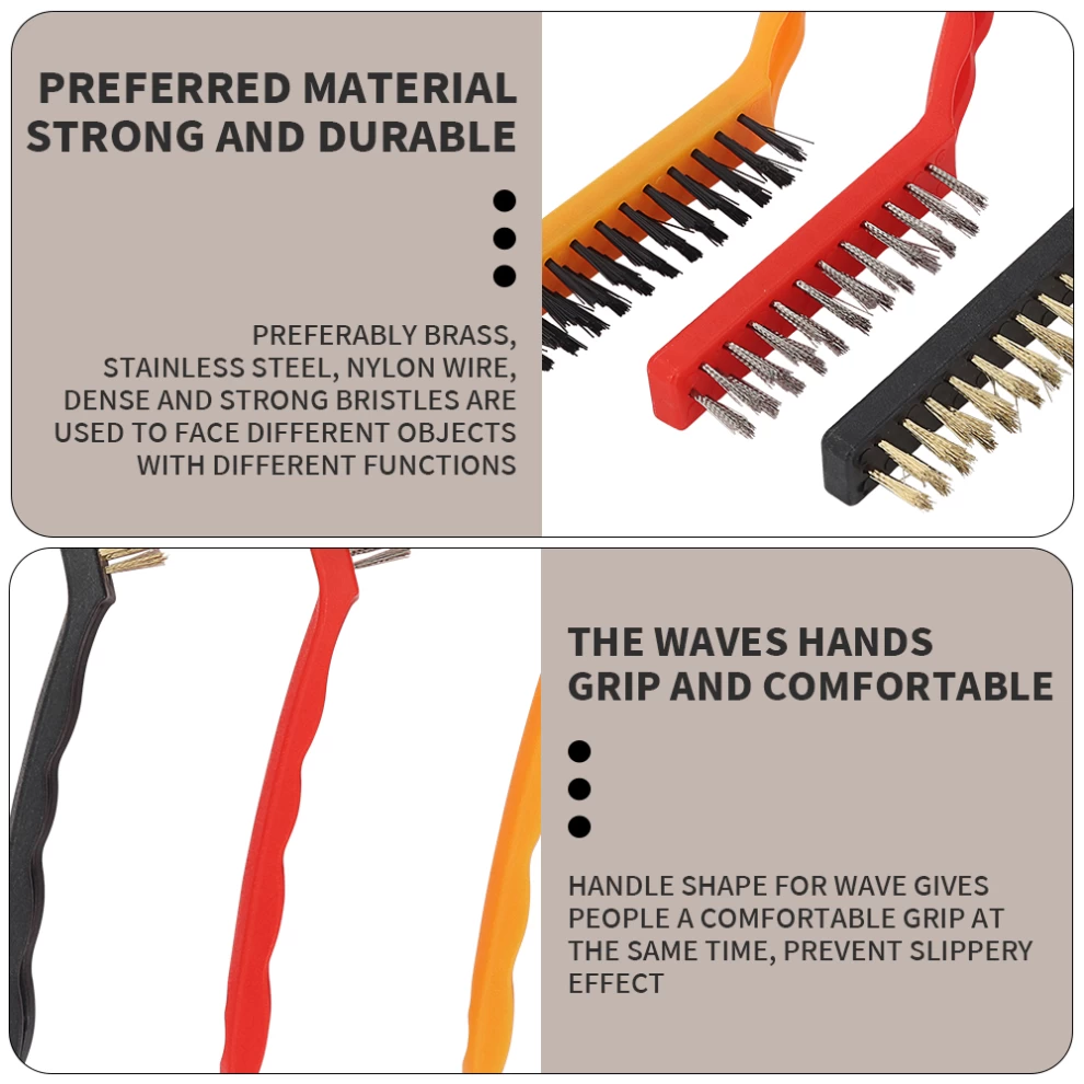 تخلص من الصدأ والأوساخ العالقة مع مجموعة مكونة من 3 فرش تنظيف سلكية! مثالية لتنظيف الأدوات، الأسطح المعدنية، الشوايات والمعدات، وتصل بسهولة إلى الأماكن الضيقة لتسهيل أعمال الصيانة والترميم.