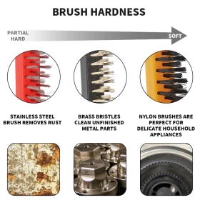 • 🧼 3 أنواع من الفرش – نايلون، نحاس، وفولاذ لتناسب جميع الأسطح