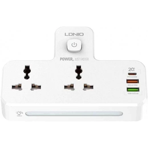 جهاز واحد مزود بمنفذين للتيار المتناوب ومنفذين يو إس بي ومنفذ تايب سي وضوء ليلي إل إي دي يمكن شحن أجهزة متعددة في وقت واحد.