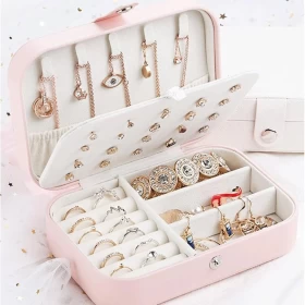 احفظي مجوهراتكِ بأمان وأناقة أينما كنتِ. علبة المجوهرات هذه تأتي بطبقتين وبتصميم مدمج يناسب الحقيبة أو شنطة السفر، وتُحافظ على خواتمك، قلاداتك، أقراطك، وأكسسواراتكِ من التشابك أو التلف. 🎀👜