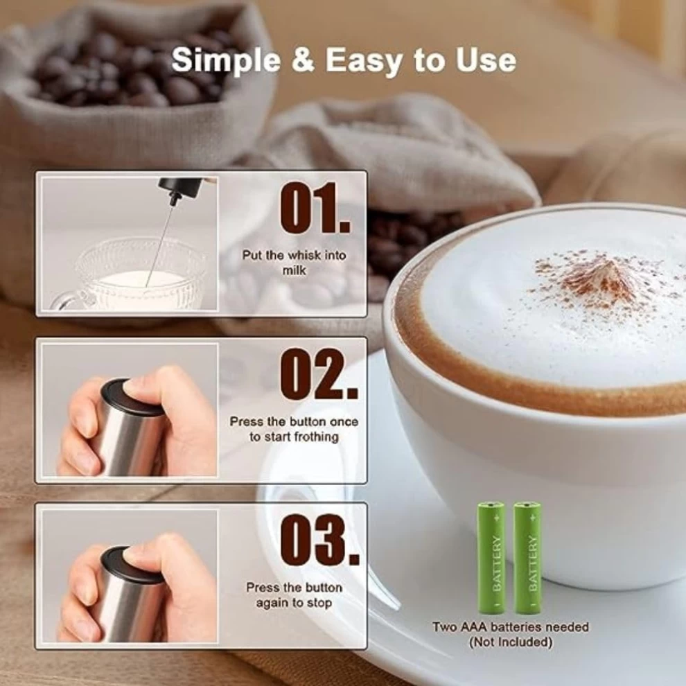 • خفق سريع: جهاز صنع الفوم باليد للقهوة هذا يتميز بخلاط آمن للطعام من الاستانلس ستيل ومحرك قوي يمكنه الدوران بسرعة عالية. لذلك فهو مثالي لعمل رغوة في غضون 30-45 ثانية من أجل لاتيه، الميلك شيك، والشوكولاتة الساخنة.
