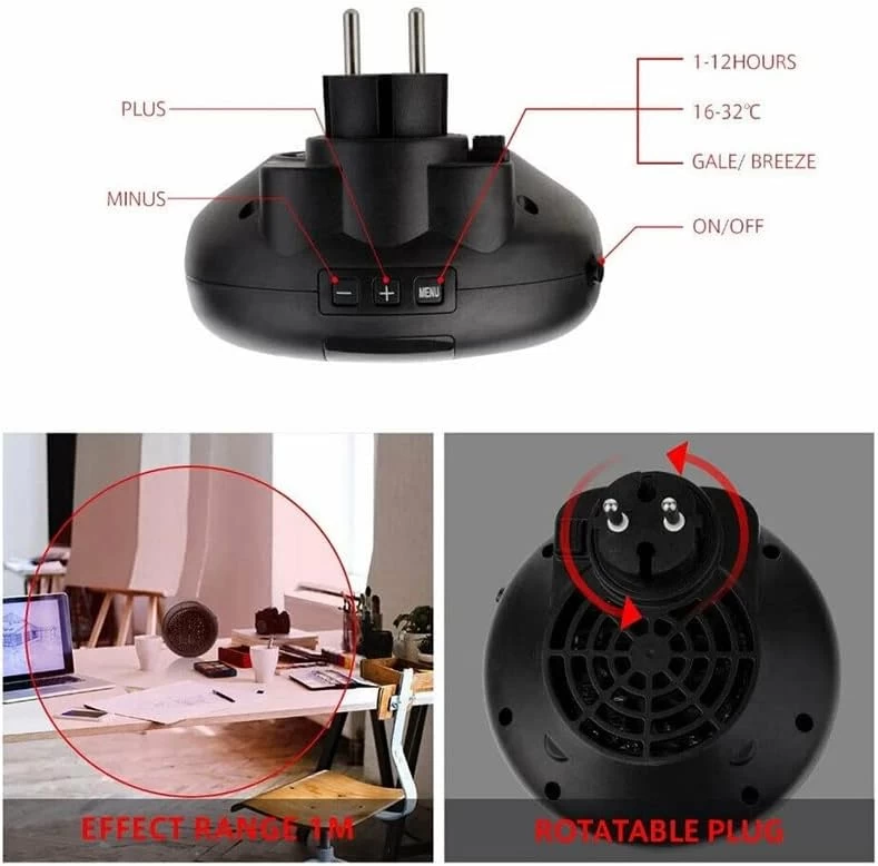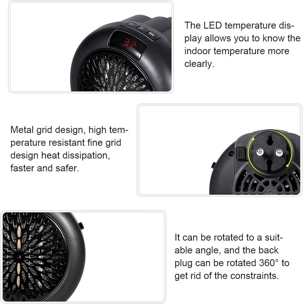 سخان مروحة صغير محمول بمقبس كهربائي بقوة 900 واط