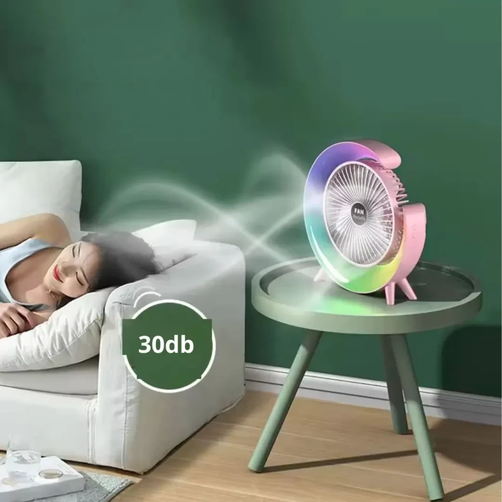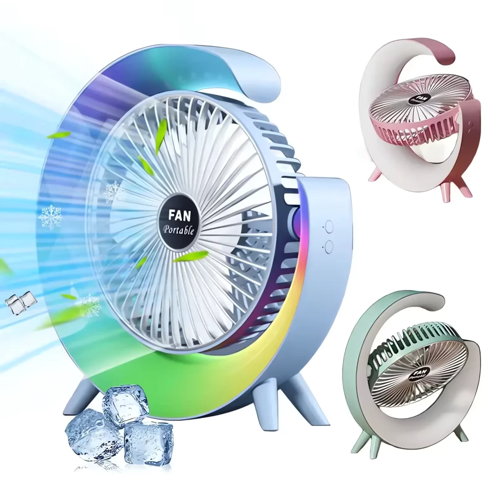 📌 المنتج: مروحة مكتب قابلة لإعادة الشحن مع إضاءة RGB 🌬️🌈