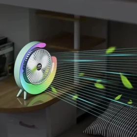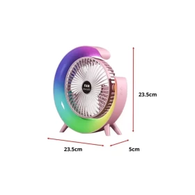 مروحة مكتب قابلة لإعادة الشحن مع إضاءة RGB | تبريد محمول بمنفذ USB مع إضاءة ملونة