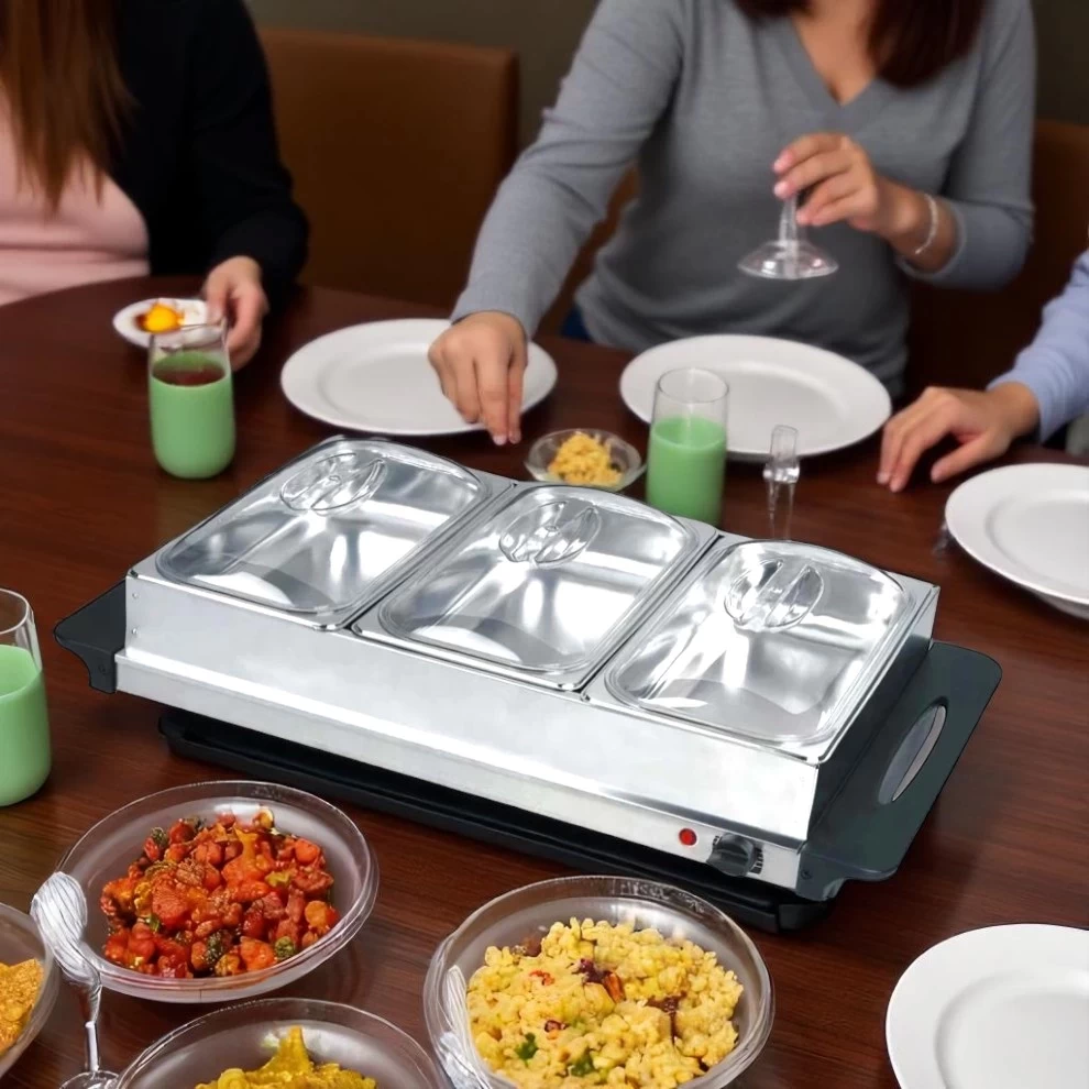 • 🍽️ 3 خانات منفصلة – مثالية لتقديم عدة أطباق في وقت واحد