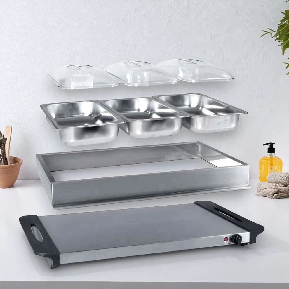 • 🍲 جهاز 2 في 1 – يعمل كصينية تسخين أو بوفيه تقديم