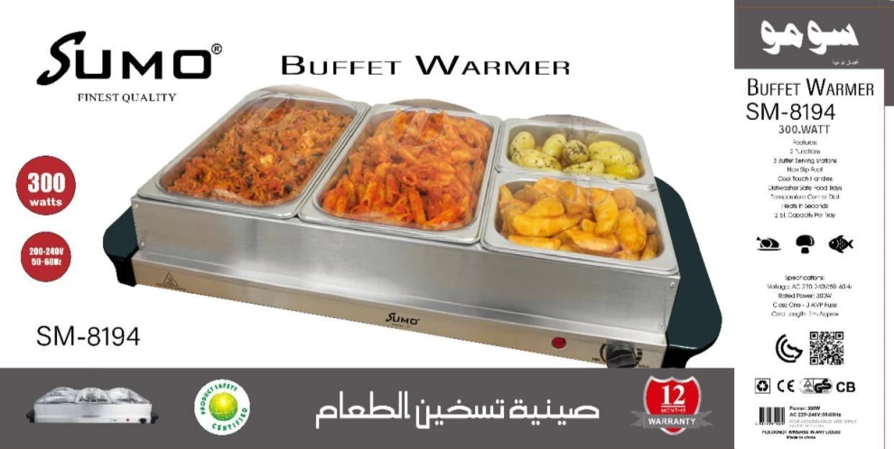 🍽️ جهاز تسخين طعام سومو 2 في 1 – 3 خانات – 300 واط