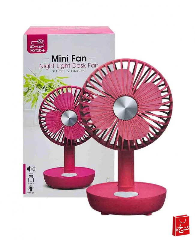 مروحة مكتب صغيرة مع ضوء ليلي – تصميم مدمج وهادئ