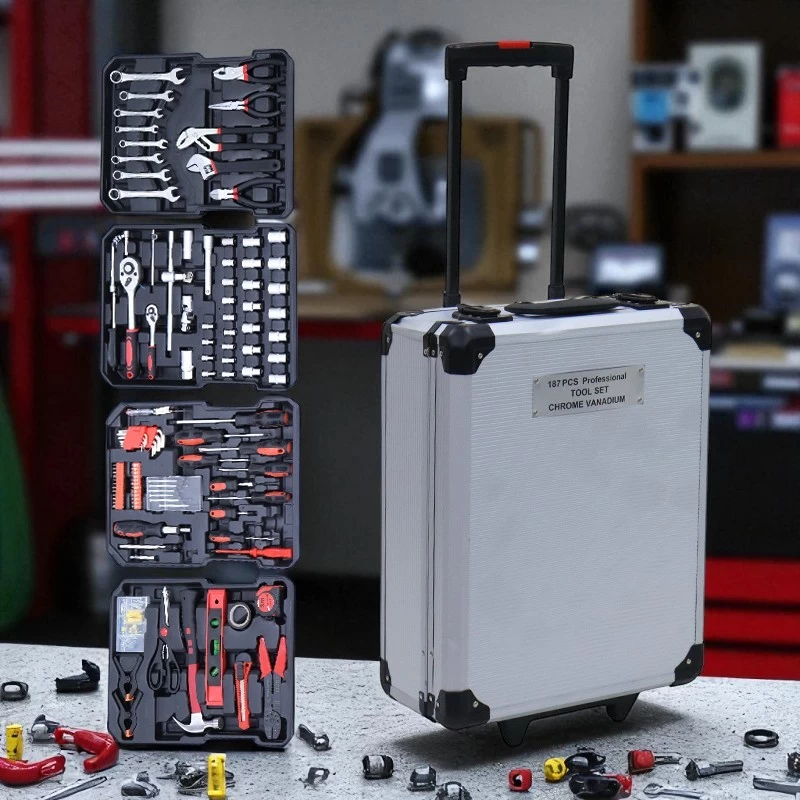 🔧 طقم أدوات يدوية عالي الجودة لتصليح السيارات والمنزل – 187 قطعة | حقيبة ألمنيوم 🧰