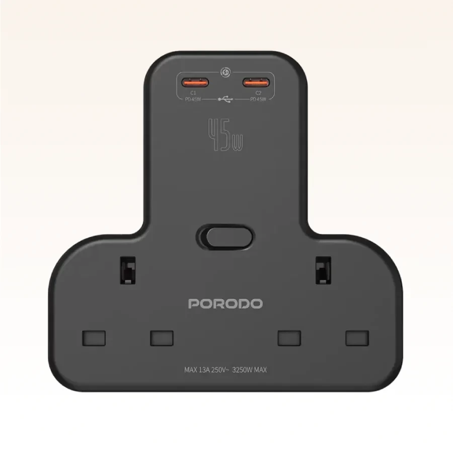 🔌 مشترك بورودو متعدد المنافذ – أسود | مركز طاقة ذكي ⚡