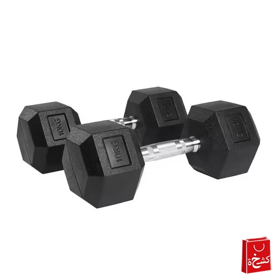 💪 دمبل سداسي مطاطي – أسود 10KG | متين وغير قابل للانزلاق