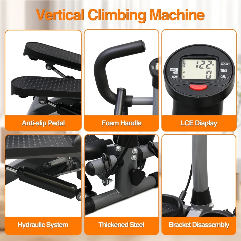 احصل على تمرين كامل للجسم في منزلك مع جهاز تمارين صعود الدرج المصمم لتحسين اللياقة القلبية وحرق الدهون وتقوية العضلات. يأتي مزودًا بـ أشرطة مقاومة لتمرين الجزء العلوي وشاشة LCD لعرض بيانات التمرين، مع هيكل قوي يتحمل وزنًا يصل إلى 150 كجم.