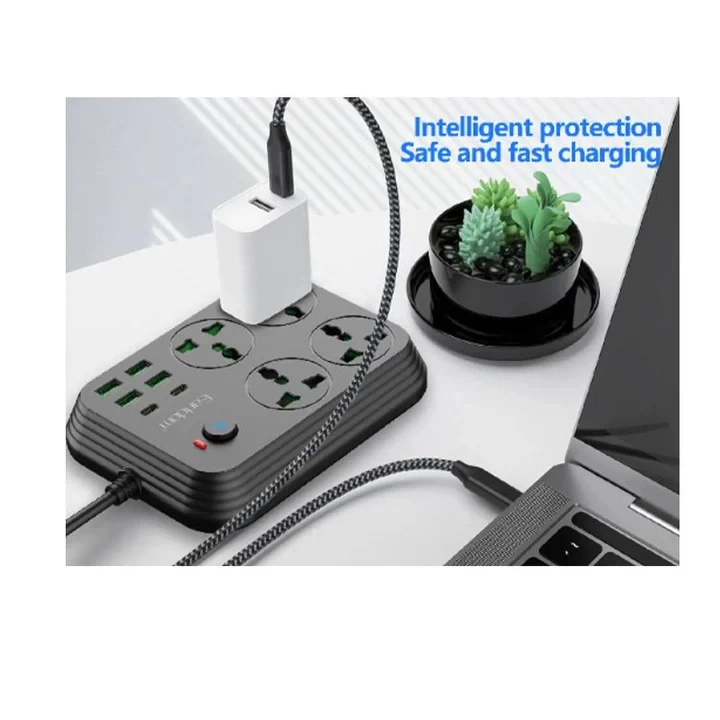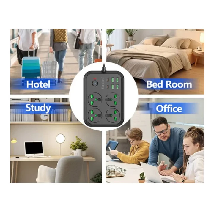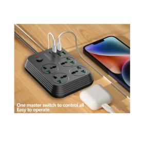 شغّل جميع أجهزتك بسهولة وأمان مع مشترك الكهرباء Earldom بقدرة 3000 واط، المصمم للاستخدام في المنزل والمكتب والسفر. يأتي مع 4 منافذ كهرباء، 4 منافذ USB، و2 منفذ PD للشحن السريع، مما يتيح لك شحن وتشغيل عدة أجهزة في نفس الوقت بكفاءة عالية.