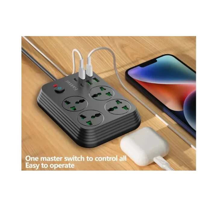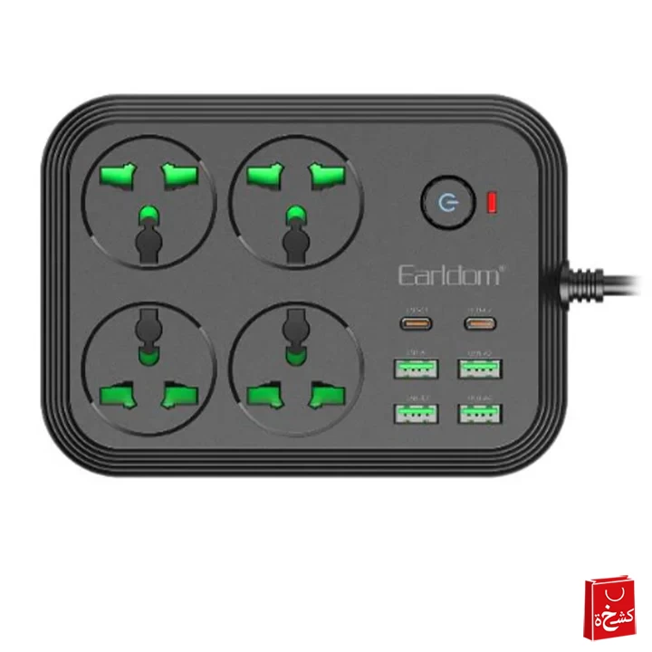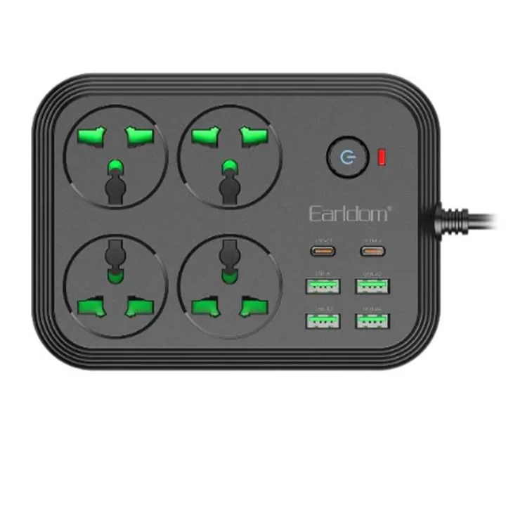 🔌 مشترك كهرباء Earldom بقدرة 3000 واط – 4 منافذ كهرباء | 4 USB + 2 PD شحن سريع