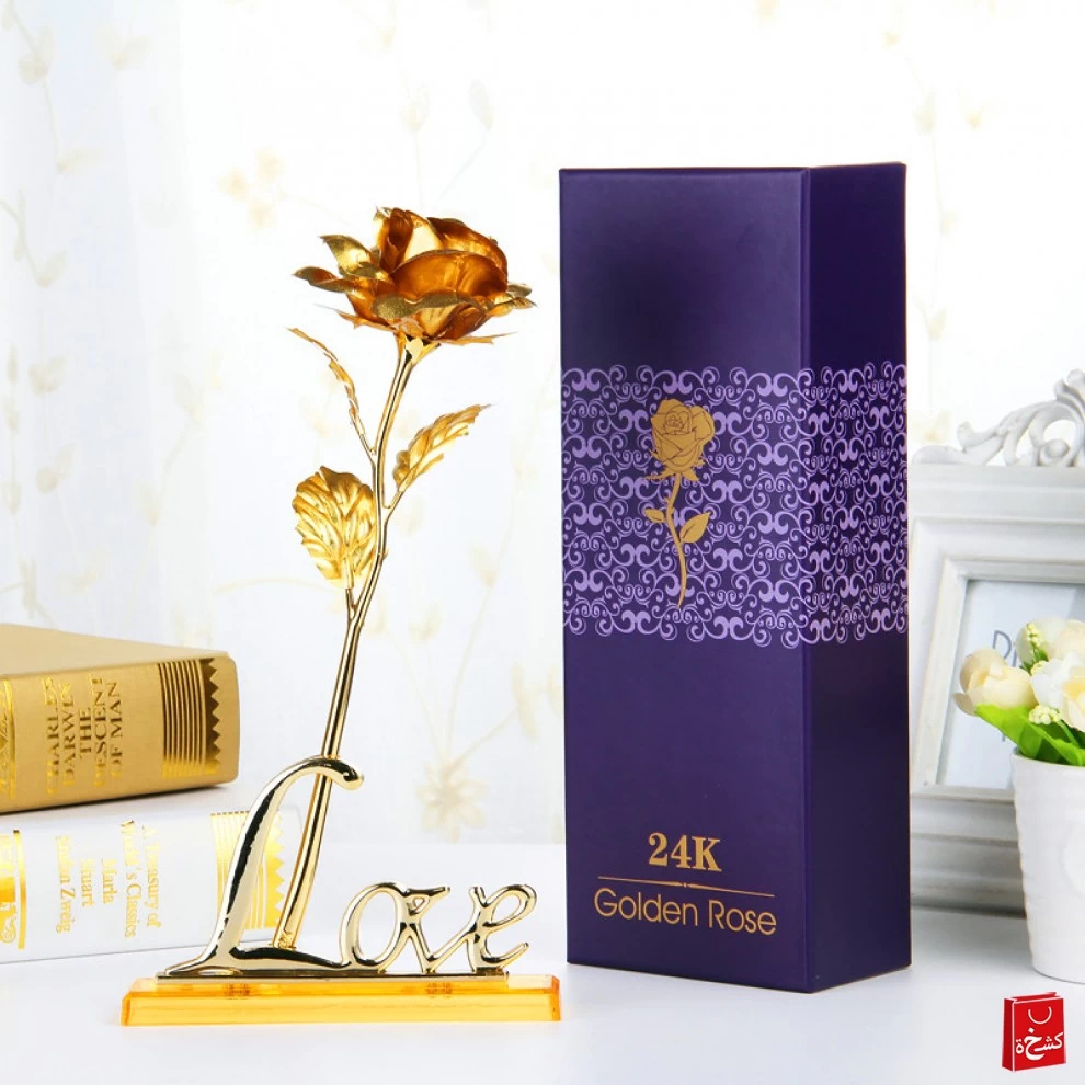 هدية عيد الحب - الوردة ملون المطليه باللون الذهبي