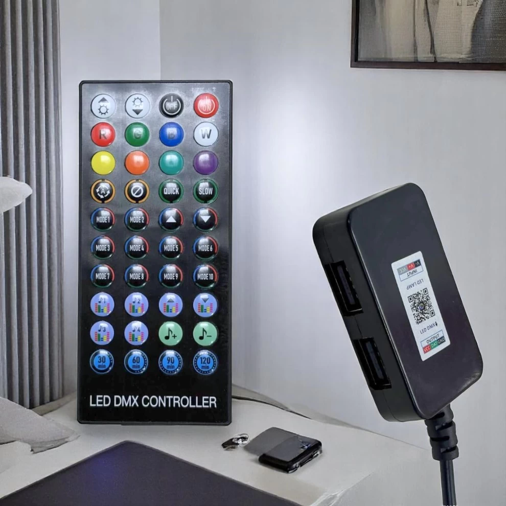 5️⃣ Control modes, brightness, and colors via app or use remote for instant control