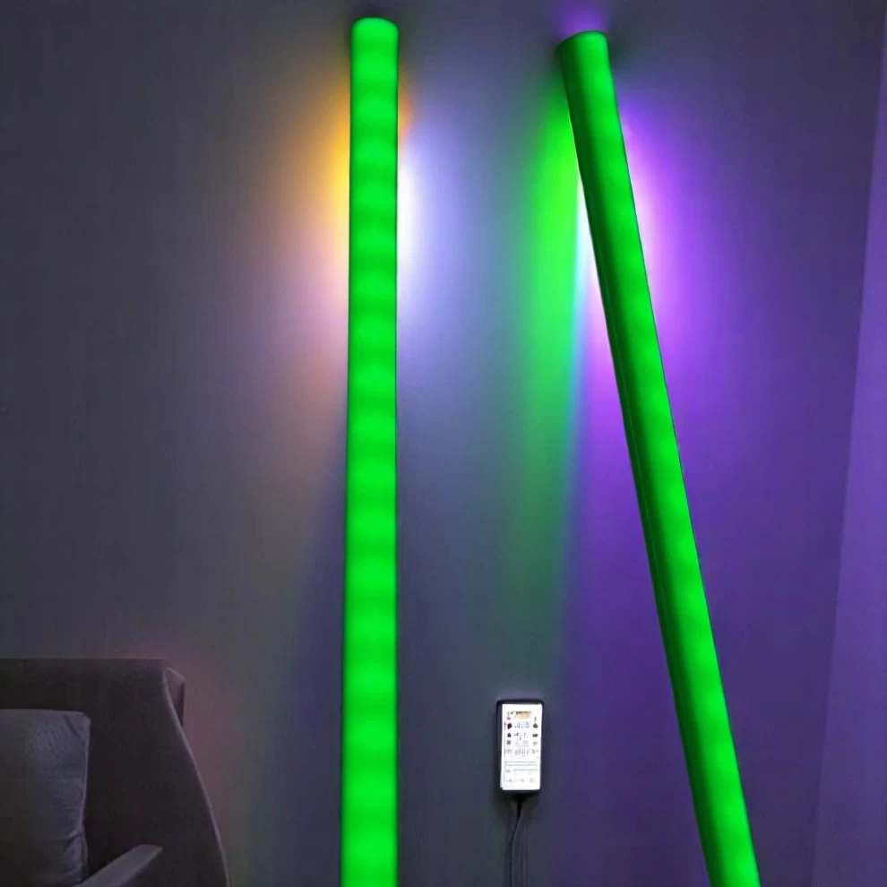 Transform your space with this 2-in-1 RGB Corner Floor Lamp Set, designed to create stunning lighting effects in any room. Each lamp stands 50 cm tall and features 207+ dynamic lighting modes, allowing full control over color, brightness, and motion via remote or the LED Lamp app (available on iOS & Android).