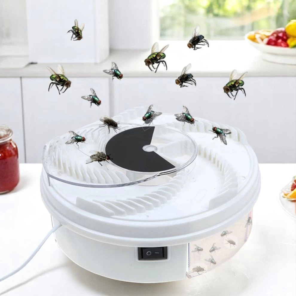 Say goodbye to annoying flies with this smart, eco-friendly fly trap! Designed with a rotating plate and bait grooves, it silently attracts and traps flies into a sealed box — keeping your space clean and bug-free without chemicals or fuss.