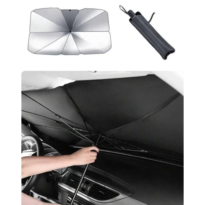 Protect your vehicle’s interior and stay cool with this high-efficiency foldable car sunshade umbrella. Built with high-hardness steel and reflective materials, it effectively blocks heat and harmful UV rays, preventing your dashboard and upholstery from fading or cracking. Enjoy a cooler, more comfortable drive every time you get in.