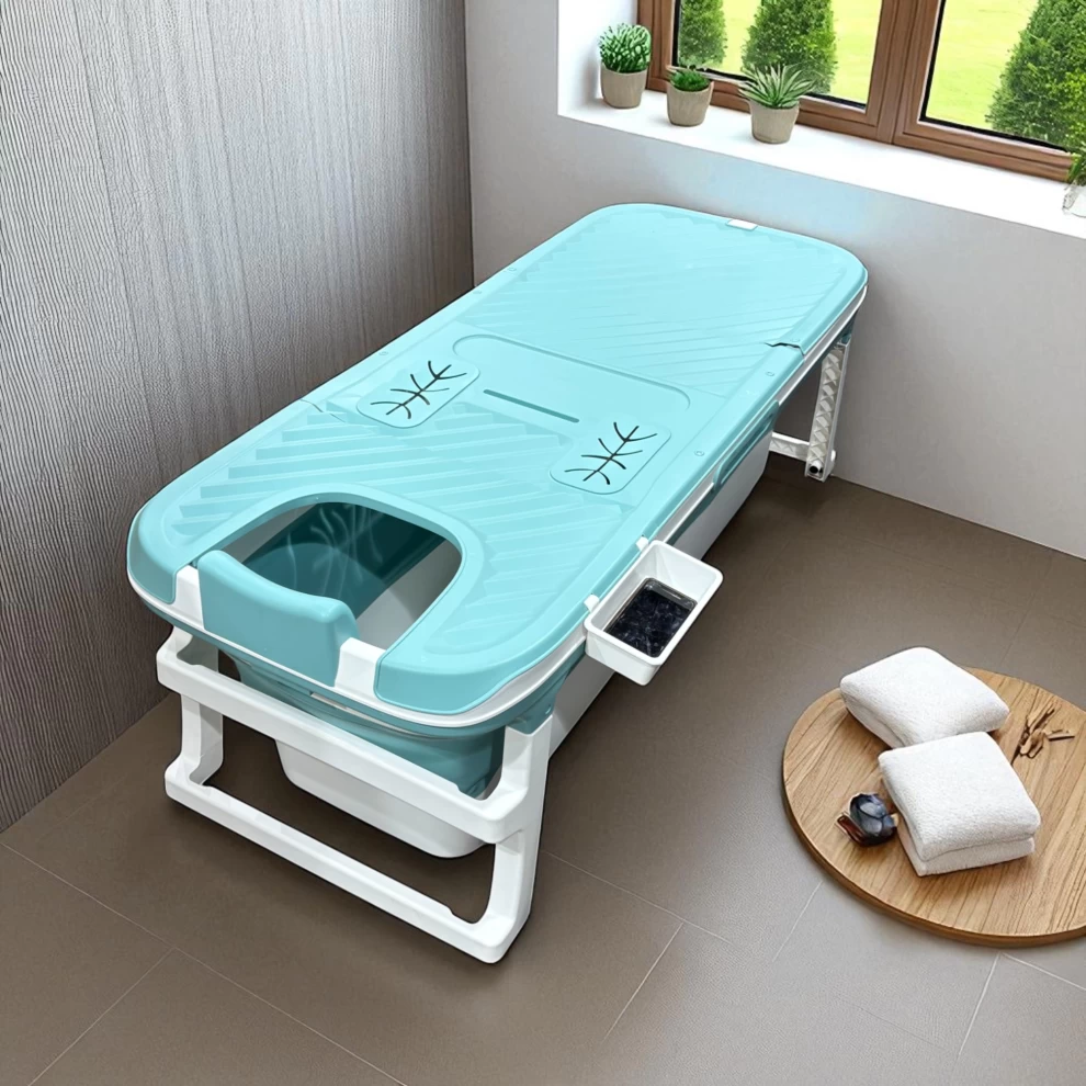Enjoy a spa-like soak anywhere with this portable folding bathtub. Designed for both adults and kids, it offers a comfortable depth for full-body relaxation, whether indoors or outdoors. Its foldable design saves space, and the durable, eco-friendly materials ensure years of reliable use. Perfect for homes, apartments, camping trips, or outdoor fun.