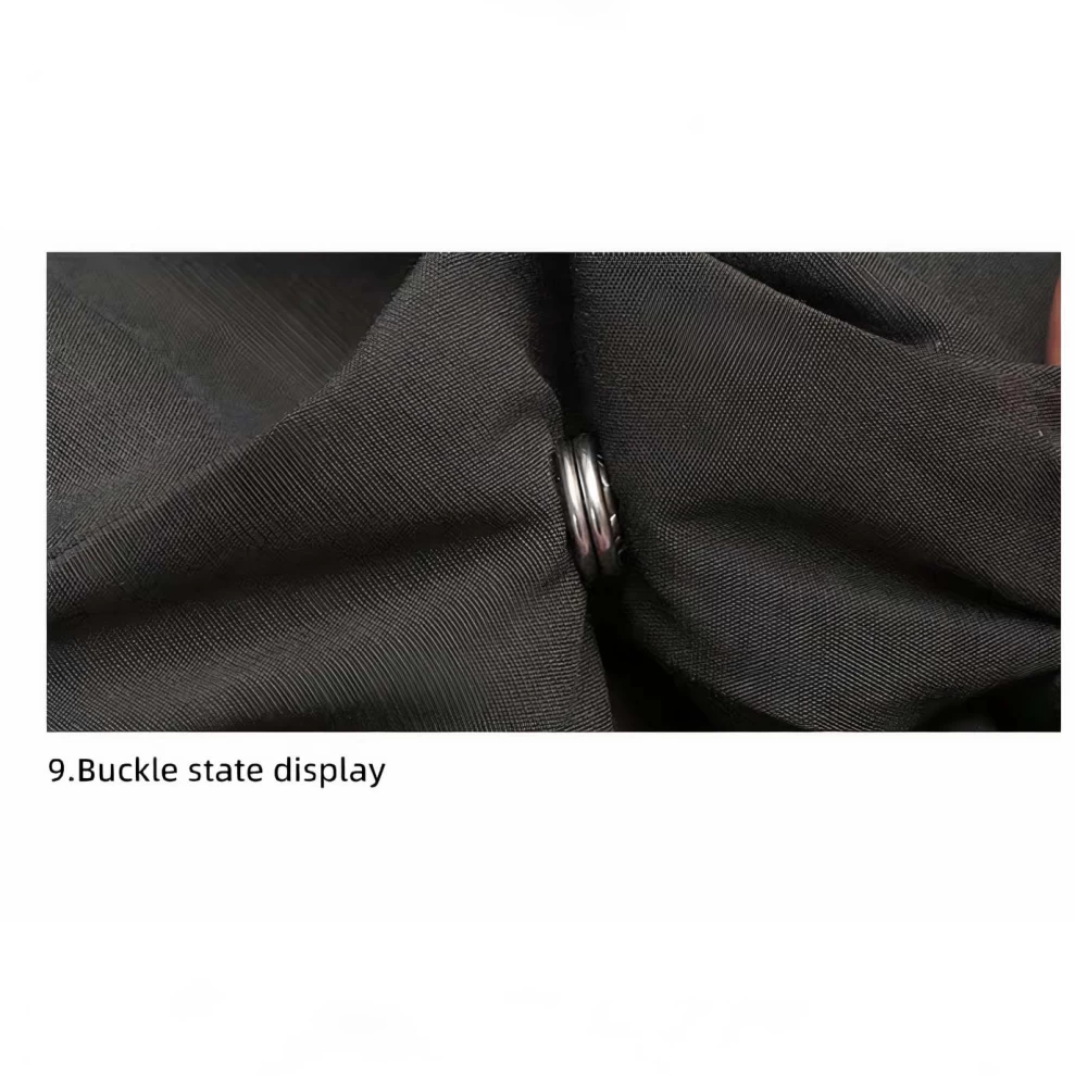 • Step 4) Put the bottom buckle in, place the female buckle with the reverse side outwards