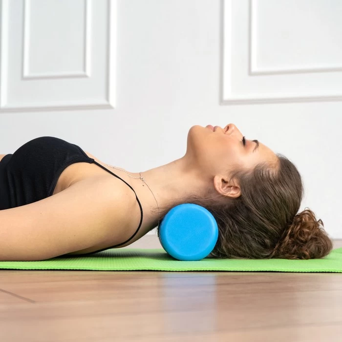 2. 🌀 Position the roller under the selected area while seated or lying on the floor.