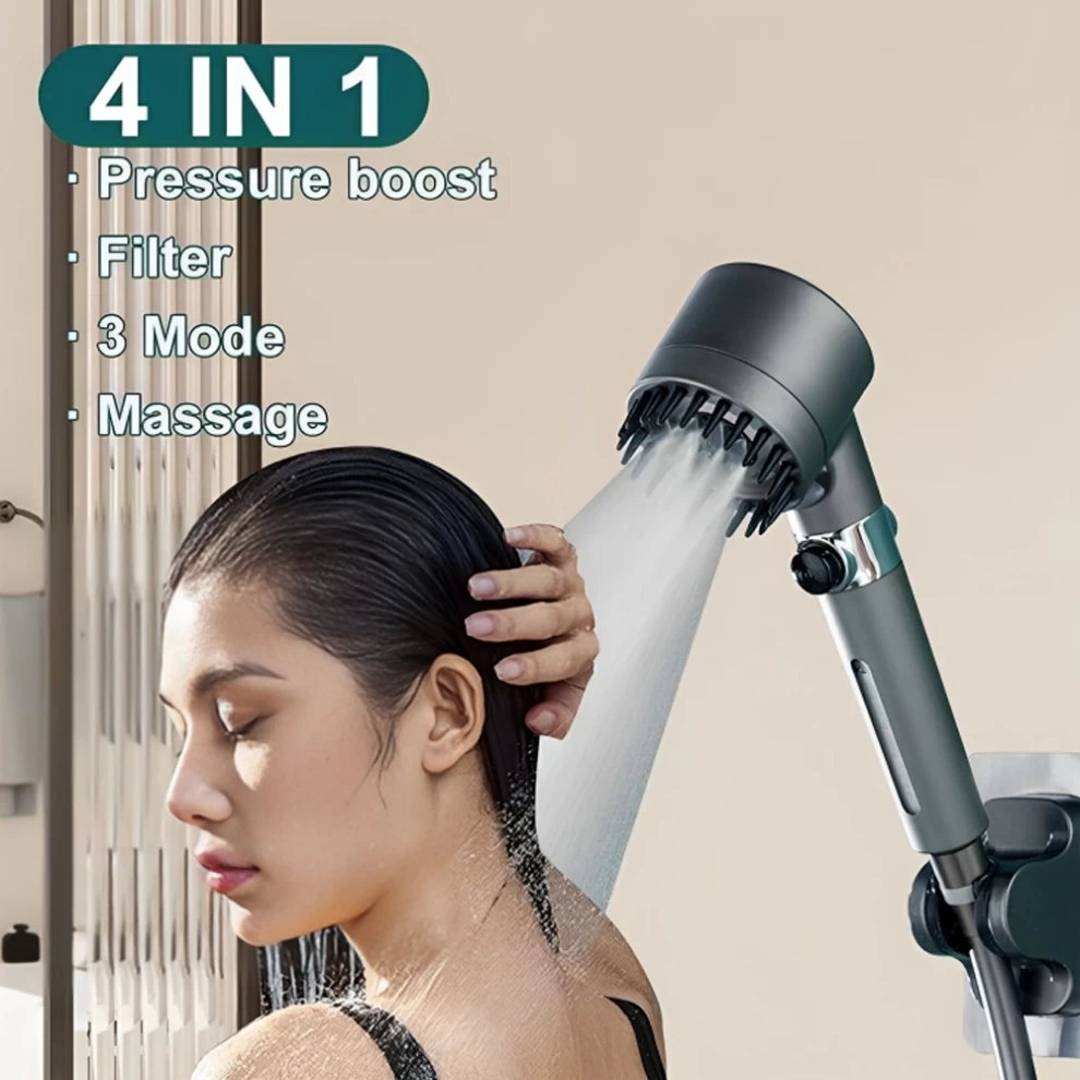 Upgrade your daily shower with this powerful and refreshing 3-function handheld shower head, designed to improve water pressure, purify your water, and give your scalp a gentle massage. With 150 ultra-fine outlet holes and micro-pressure technology, it saves water while giving you a spa-like experience — perfect for homes with low water pressure.
