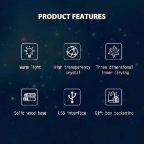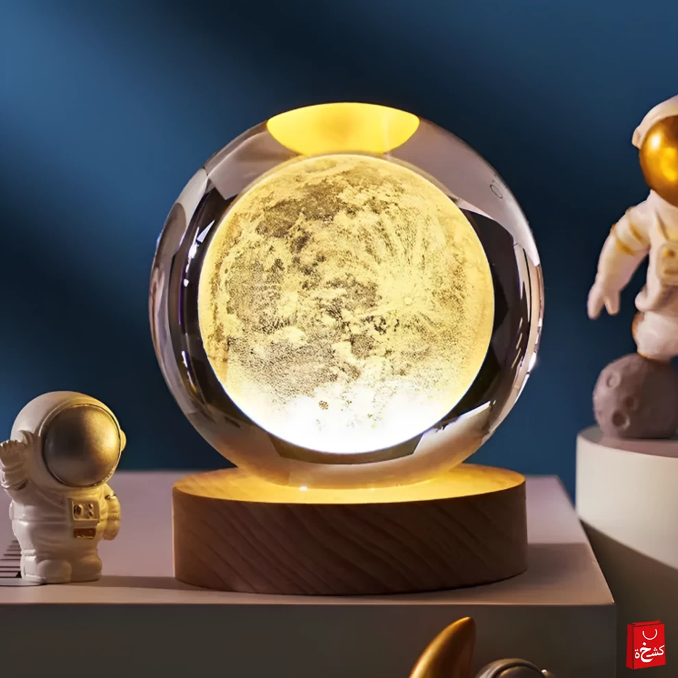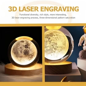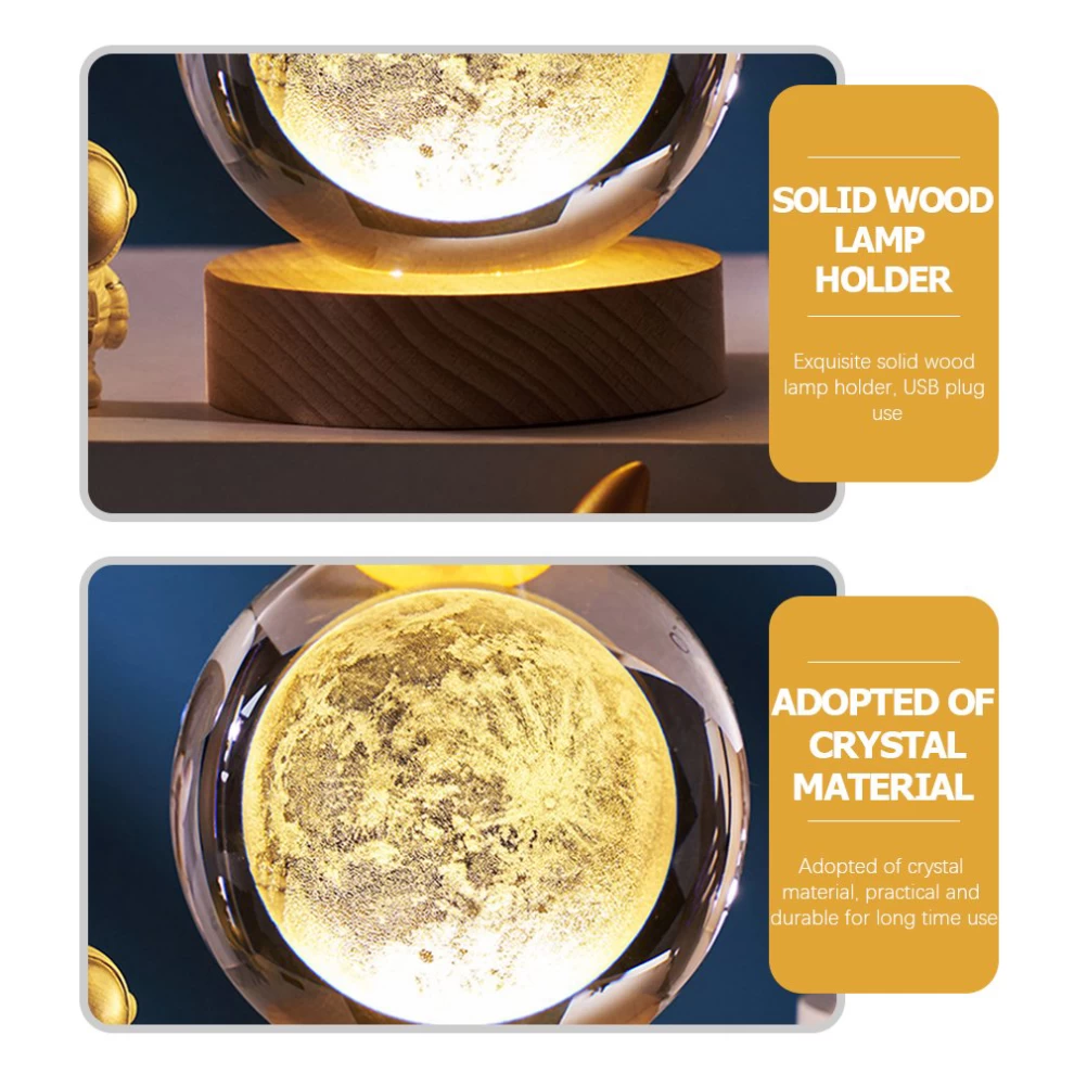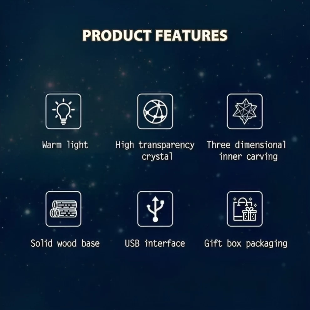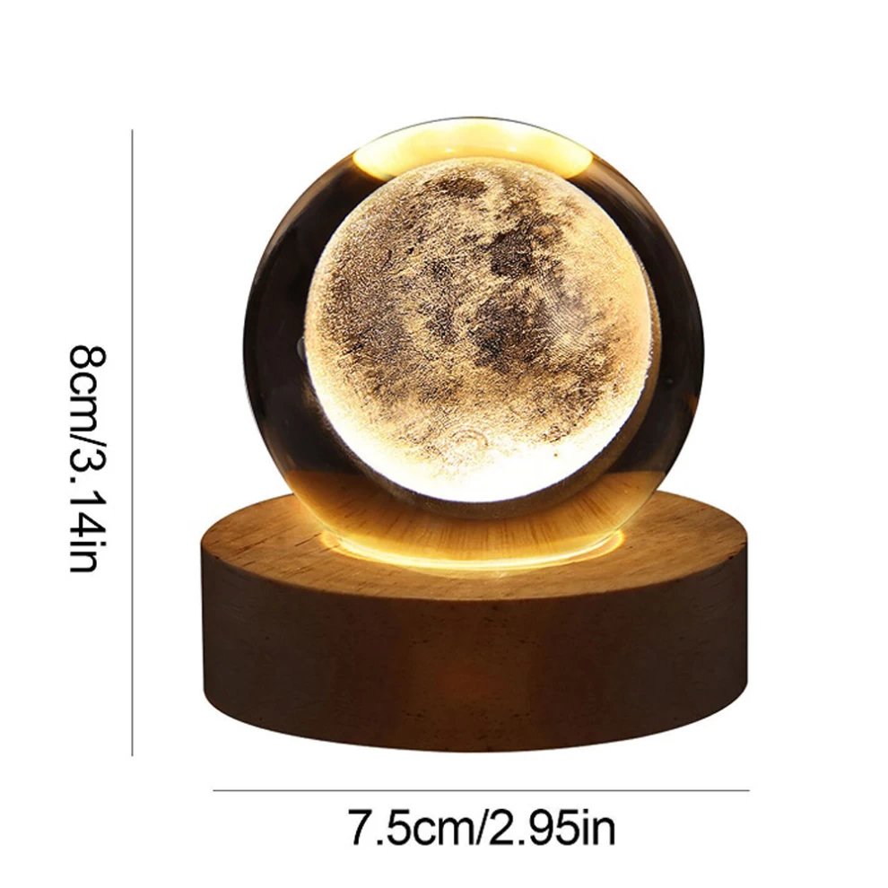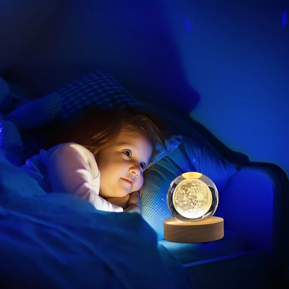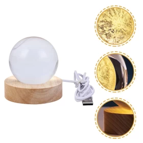 Add a magical touch to your space with this elegant crystal ball night light, combining clear 3D laser-etched crystal and a smooth beech wood base. Designed to enhance your mood and add warmth to any room.