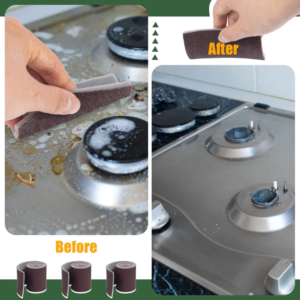 Are you helpless with stubborn dirt such as rust stains, stubborn oil stains and carbon stains? Carborundum sponge is good for cleaning all kinds of stubborn dirt in the kitchen on cookware, pots, stove, aluminum alloy frame, etc