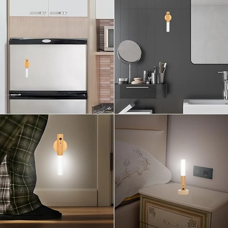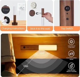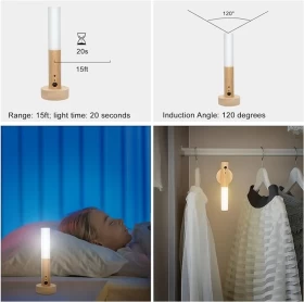Motion Sensor Night Light Solid Wood Smart Body Sensor Night Light, USB Charging 4M Motion Sensor Night Led Light Sensing Distance Hand-held Portable for Bedroom Light Nigh Indoor!