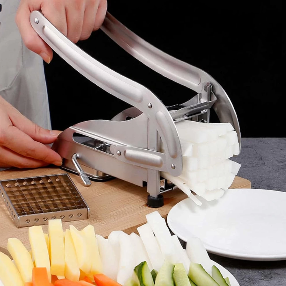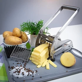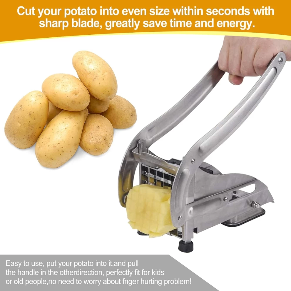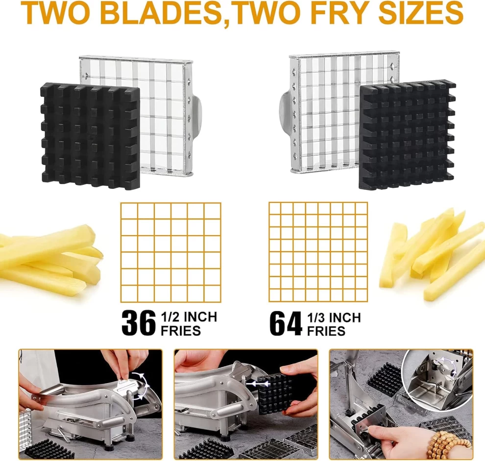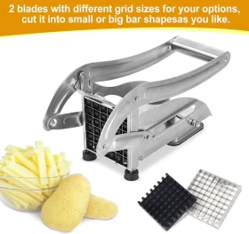 Stainless Steel French Fry Cutter with 2 Interchangeable Blades
