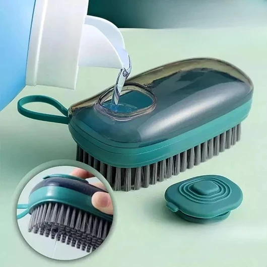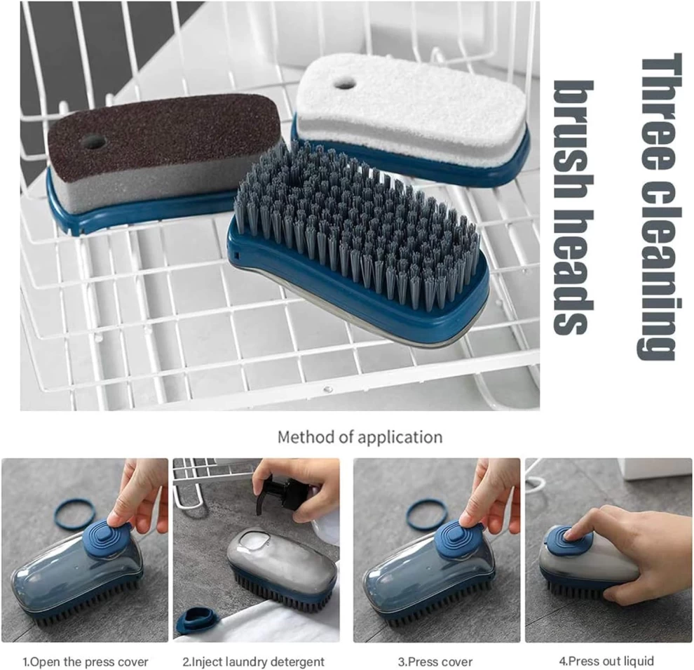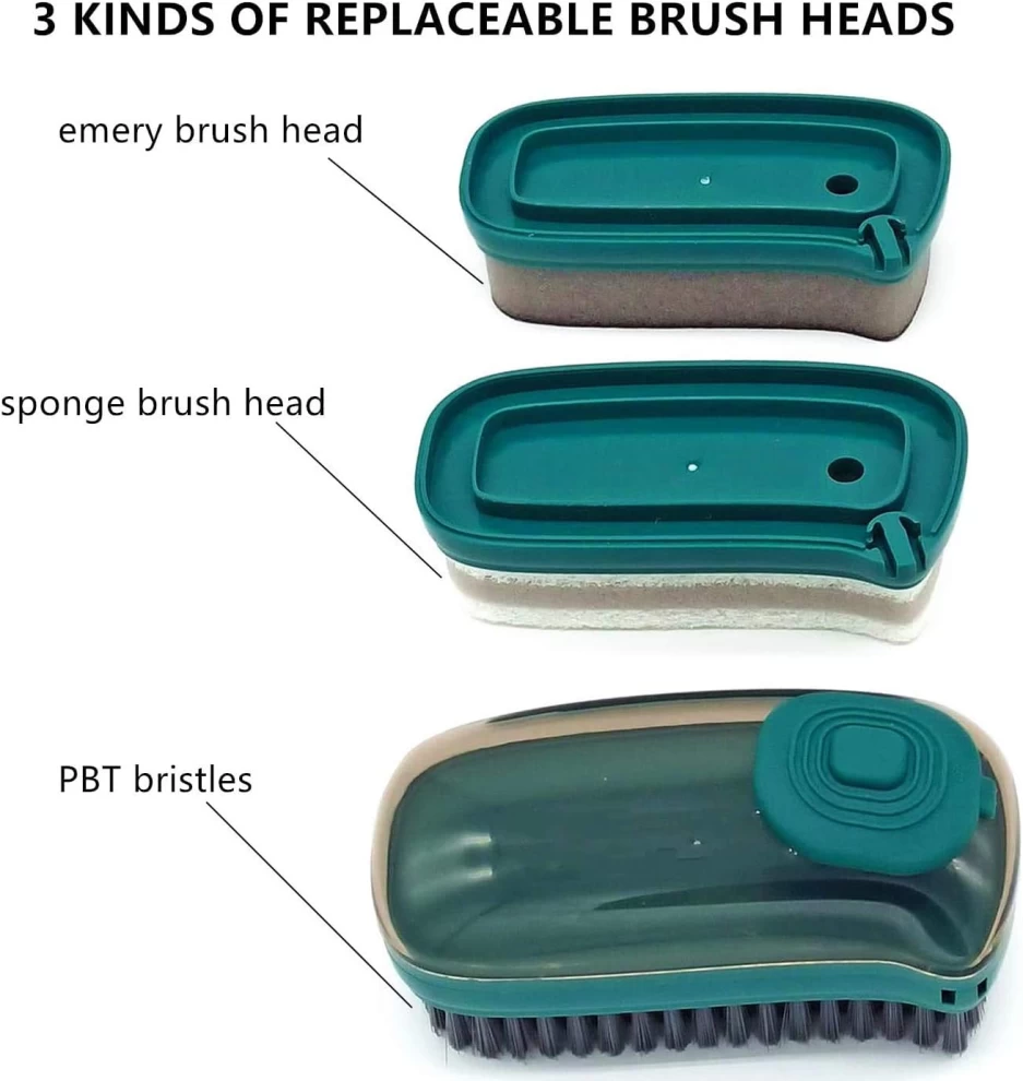 •  Gently turn the loop at the handle the handle to inject the soap, and Scrub Brush will not leak when it is full. Press the button on the top to spray out the soap to clean.non-scratch nylon bristles can easily