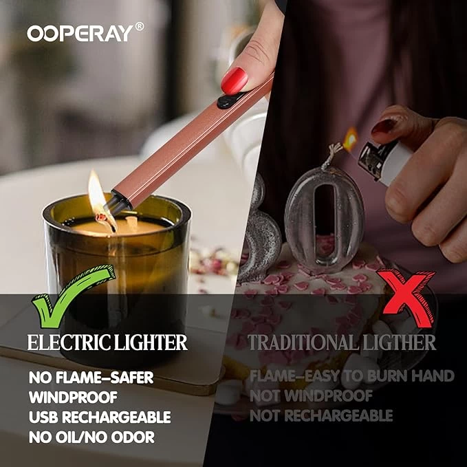 •  Electric lighter Arc Heating Can Heat Things in a High Temperature in A Short Time.upgraded candle lighter adopt windproof design, you can use it under any conditions, it is an ideal lighter tools for outdoor use.