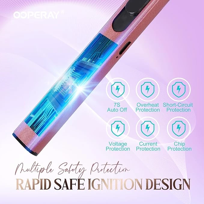 • Electric lighter without gas required, No fluid required, No flame. For security reasons, lighter has specially multiple protections, if the heating time is too long, the lighter will automatically cut off the power. What’s more, a safety lock design to keep the children away from the fire.